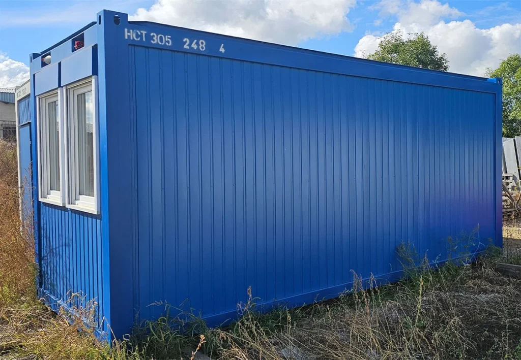 6-metrový kancelársky kontajner SKLADOM. Kontajner je ideálny pre staveniská alebo ako trvalá prístavba kancelárie a ponúka robustné, flexibilné a ihneď použiteľné riešenie.
