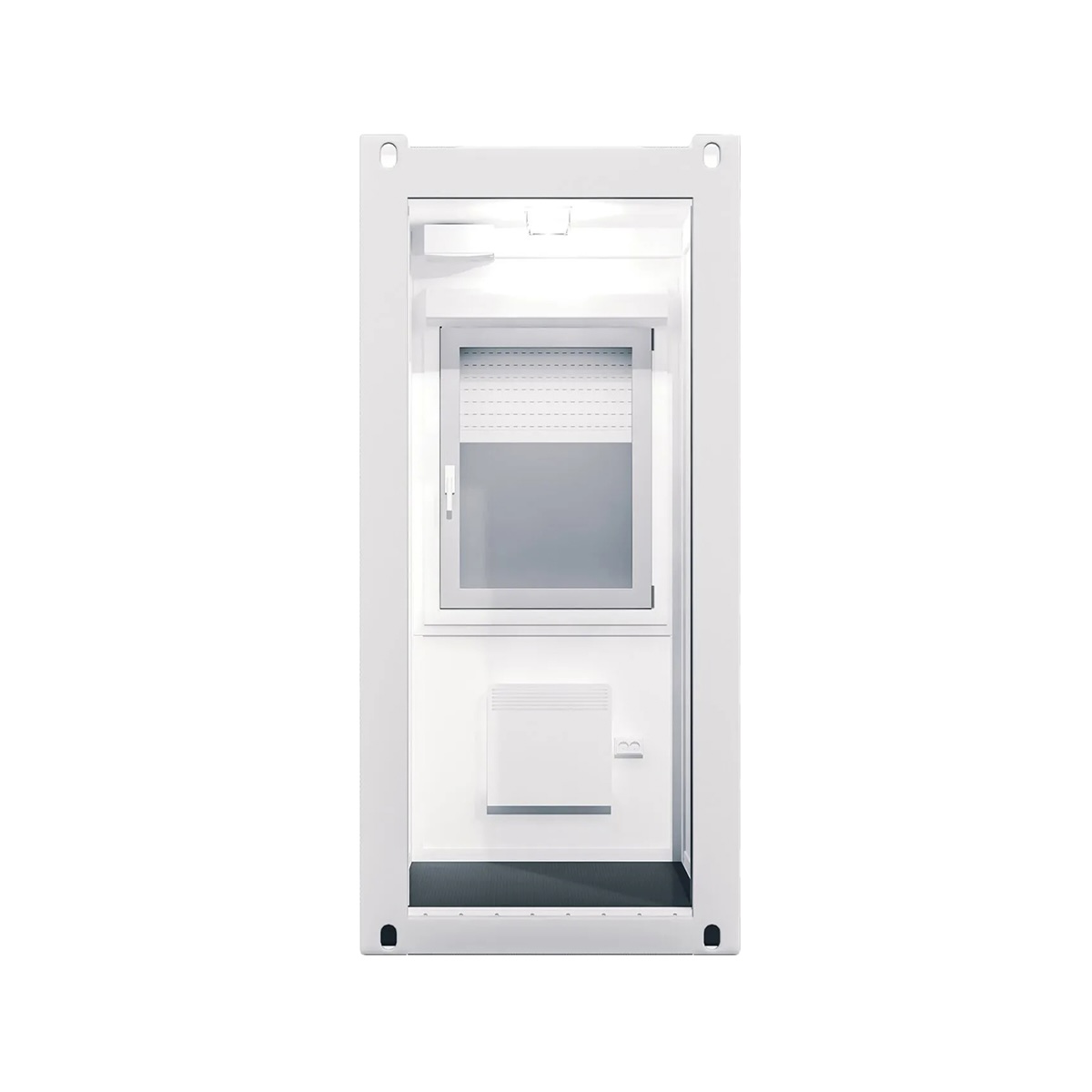 Výroba jednoduchej a praktickej kabínky pre vrátnicu na platforme kancelárskeho kontajnera HCT-065. Kontajner obsahuje vybavenie: okno, dvere, kúrenie konvektorom 2kw, elektroinštalácia a LED osvetlenie.