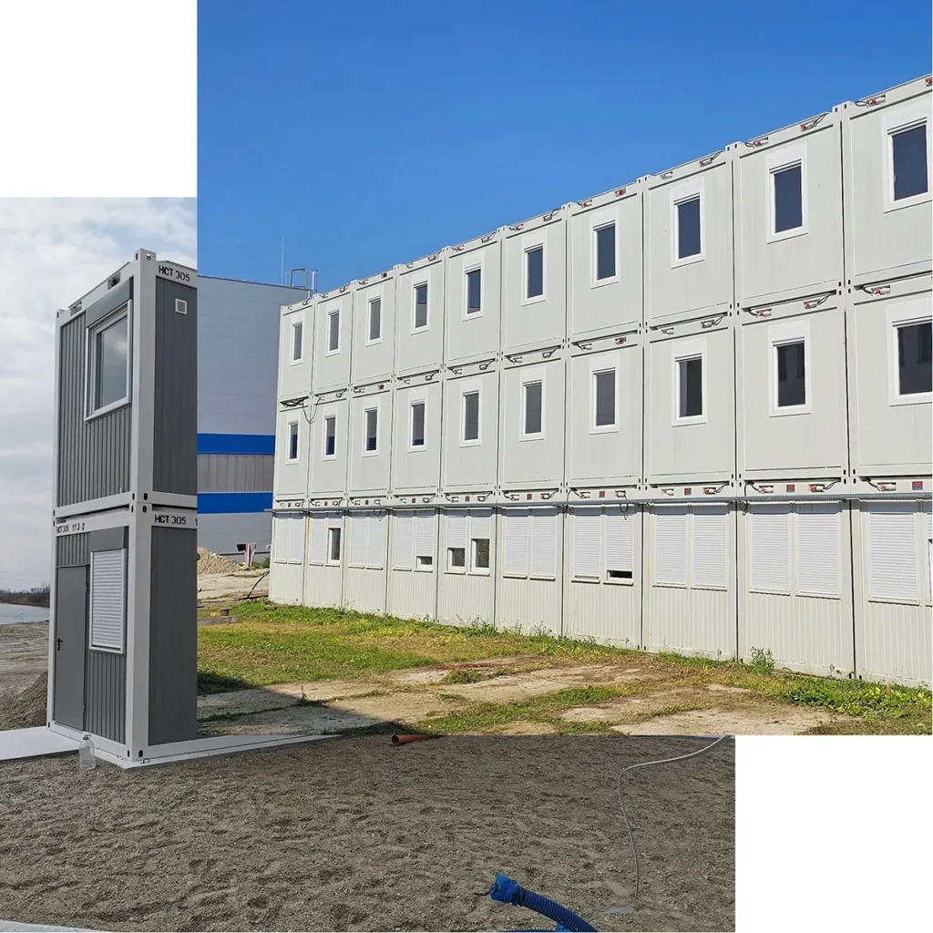 Výroba kontajnerov a následná kompletizácia komplexnej modulárnej budovy situovavej na stavenisku. Modulárne budova kombinuje kancelárske kontajnery a hygienické zariadenia (toaleta + sprchy). V rámci kompletizácie sme zabezpečili kompletný dovoz kontajnerov na požadované miesto a následnú kompletizáciu do jedného komplexného celku.