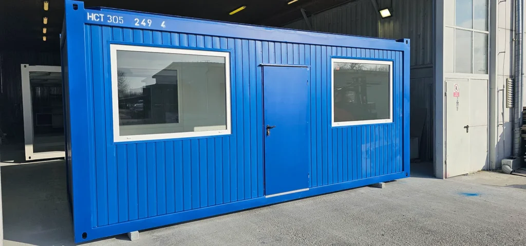 Výroba kancelarského kontajnera v modrej farbe do výrobnej haly pre nášho zákazníka.