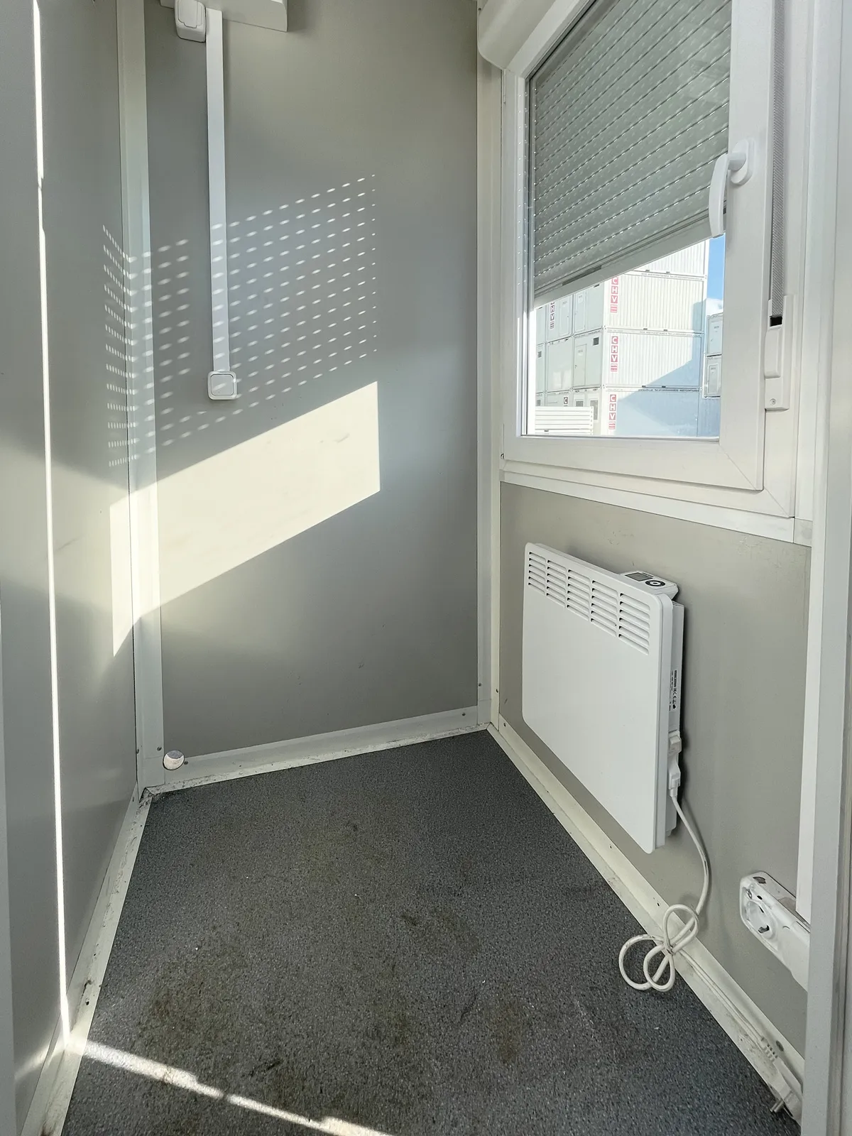 Všestranný kancelársky kontajner, ideálny ako vrátnica alebo strážna miestnosť. Táto kompaktná jednotka je plne prispôsobiteľná, pripravená na použitie a dokonale sa hodí na použitie v rôznych prostrediach.