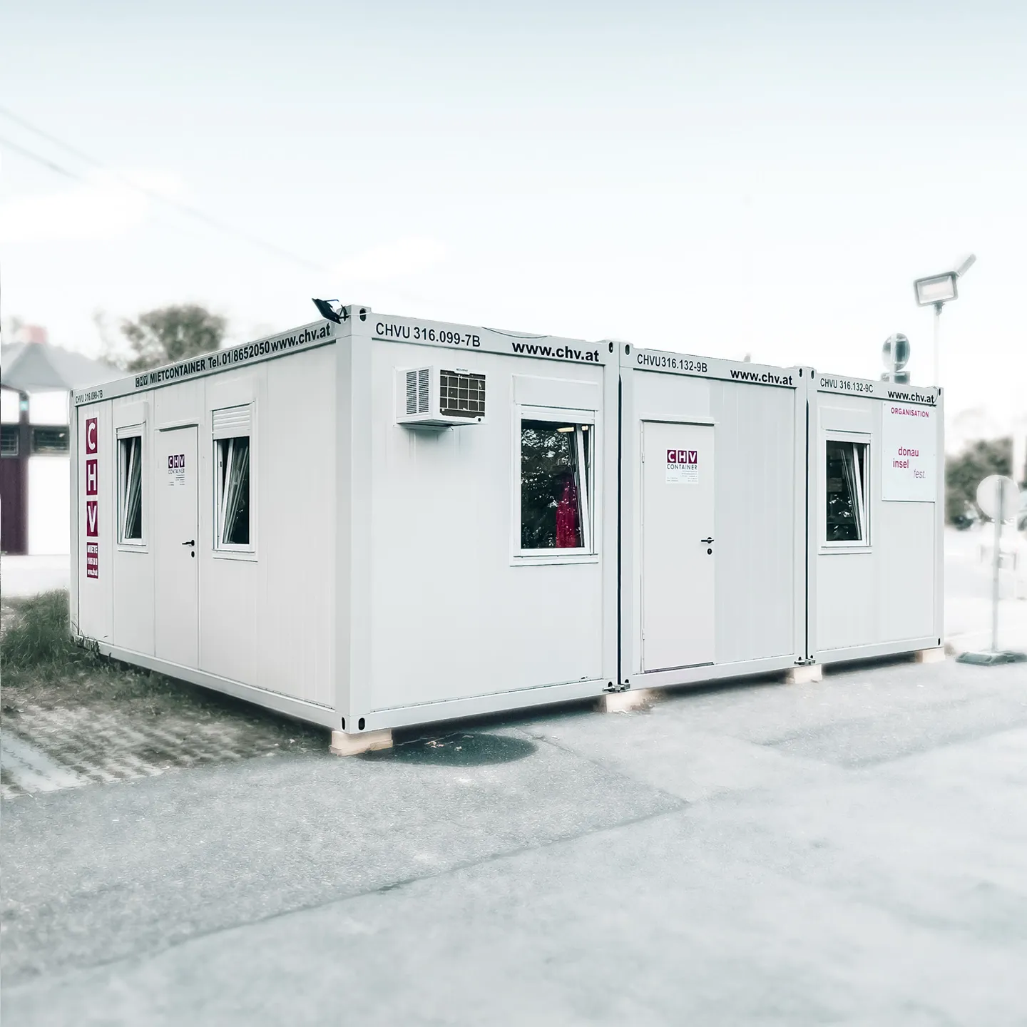 Kompaktný a rozšíriteľný kancelársky priestor. Náš dvojkontajnerový komplex spája dva 6-metrové kancelárske kontajnery do priestranného 30 m² priestoru. Štyri veľké okná vytvárajú svetlú a príjemnú atmosféru. Vysokokvalitné elektrické a osvetľovacie inštalácie umožňujú okamžité použitie. Objekt je navrhnutý tak, aby sa dal flexibilne prispôsobiť rôznym konceptom využitia vďaka odnímateľným vnútorným stenám.